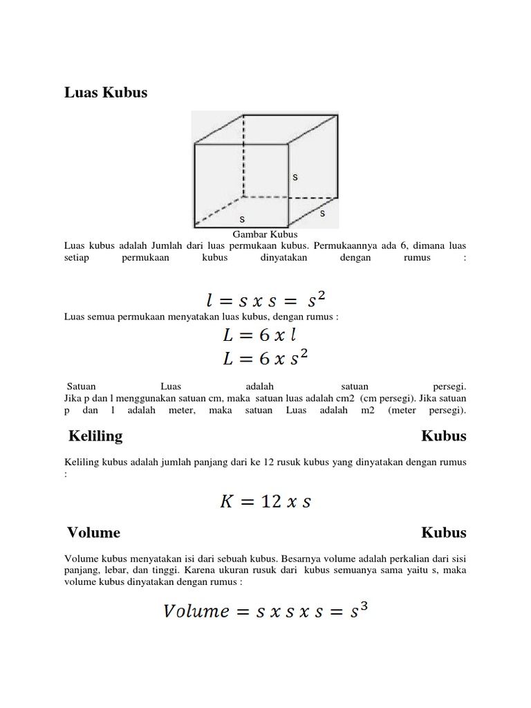 Rumus Volume Dan Luas Permukaan Kubus