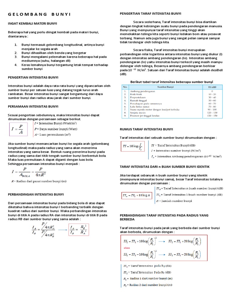 Taraf Intensitas Bunyi Dan Penerapan Gelombang Bunyi - Rumus Dasar