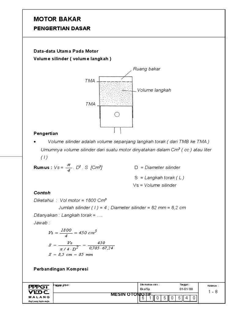 LAKSITO: Perhitungan Dasar Motor (Volume Silinder & Perbandingan …