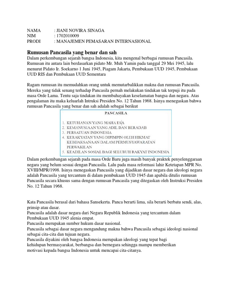 Rumusan Pancasila Yang Sah Dan Benar Terdapat Dalam Uud 1945 Pada …