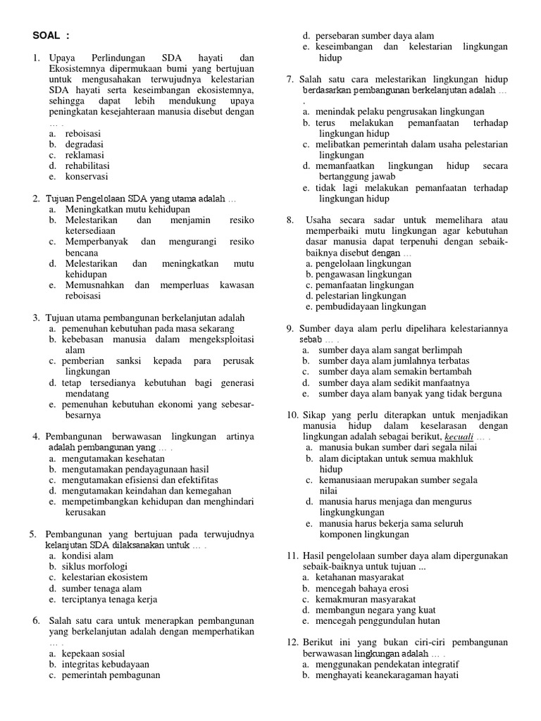 Salah satu ciri pembangunan berwawasan lingkungan adalah ….. *A …