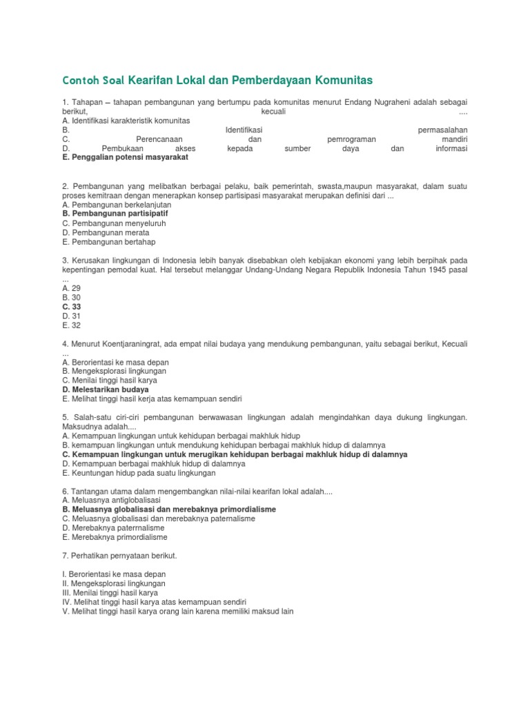 Contoh Soal kearifan lokal