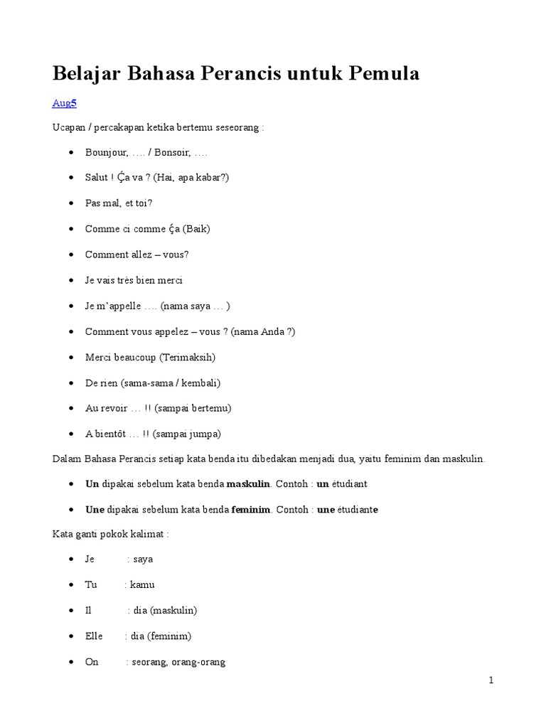 Belajar Bahasa Perancis Untuk