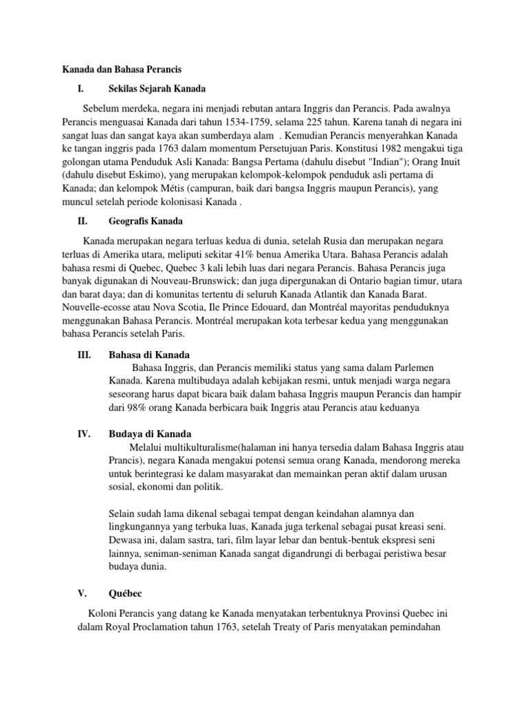 Kanada dan Bahasa Perancis I. Sekilas Sejarah Kanada