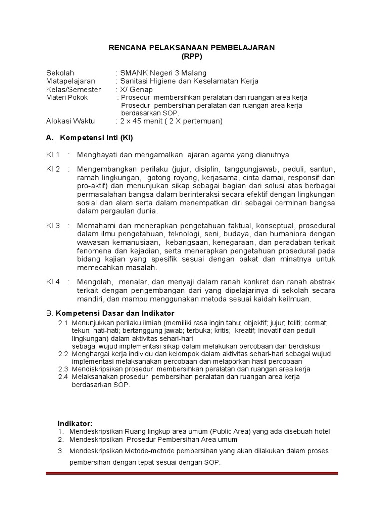 Rpp Sanitasi Hygiene Dan Keselamatan Kerja Perhotelan - Info …