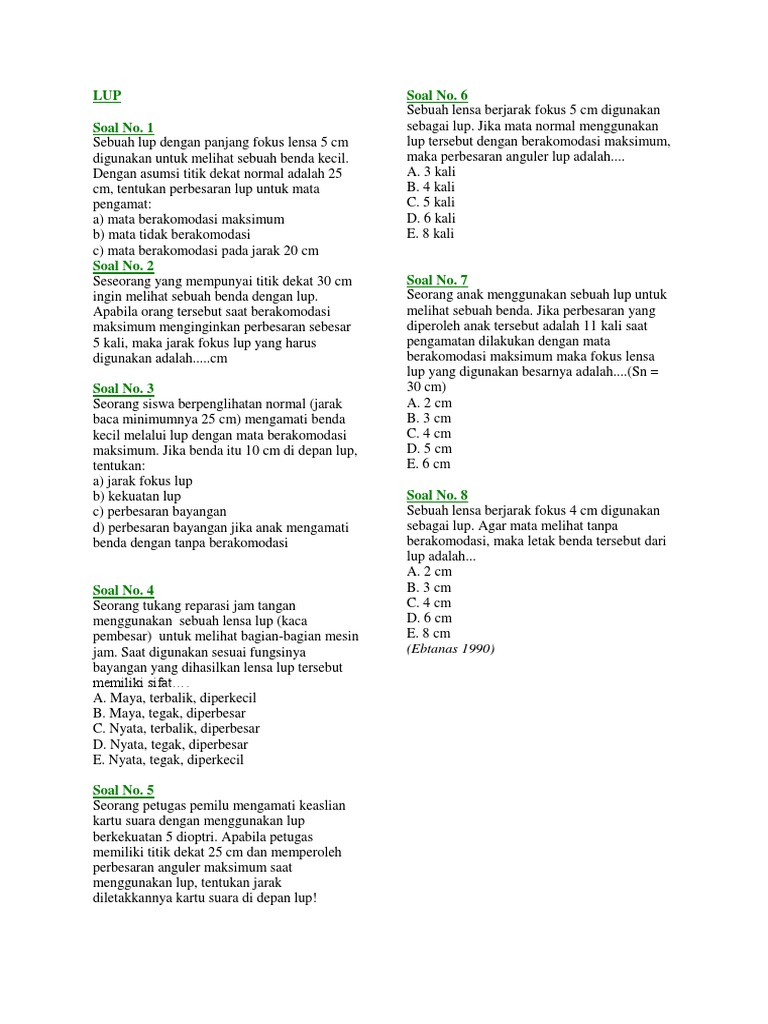 10 Contoh Soal Tentang Lup (Kaca Pembesar) dan Pembahasannya …