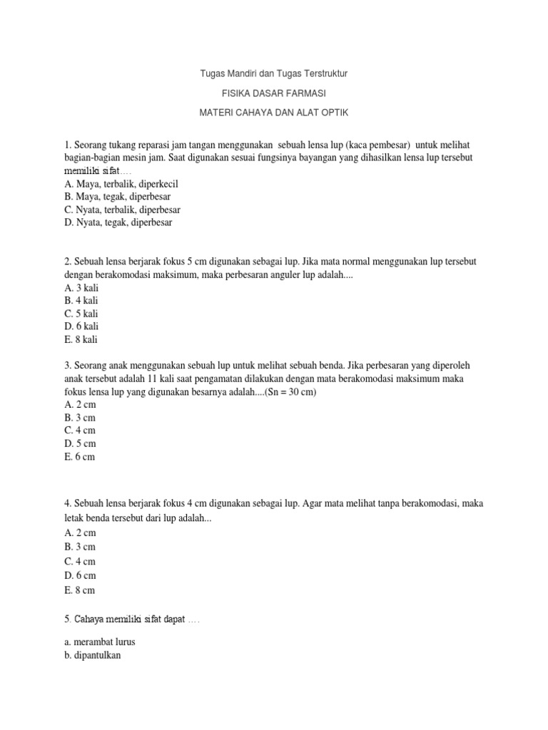 PDF) LATIHAN SOAL BAB 11 " ALAT-ALAT OPTIK " | ainun mardiyah …