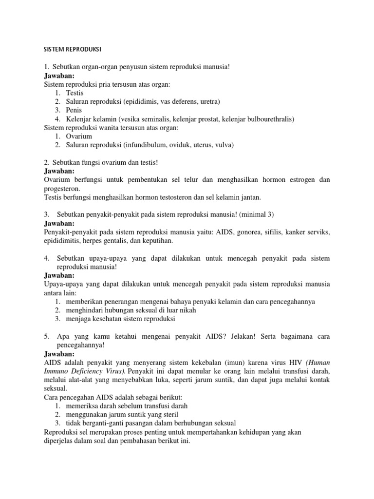 TUGAS IPA 1 SISTEM REPRODUKSI PADA MANUSIA 1. Jelaskan 3 alasan …