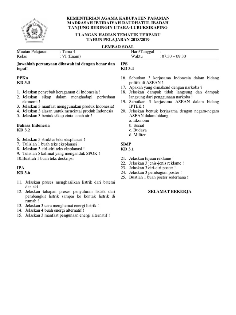 KUNCI JAWABAN Soal Belajar TVRI Kelas 1-3 SD 10 Juni 2020 …