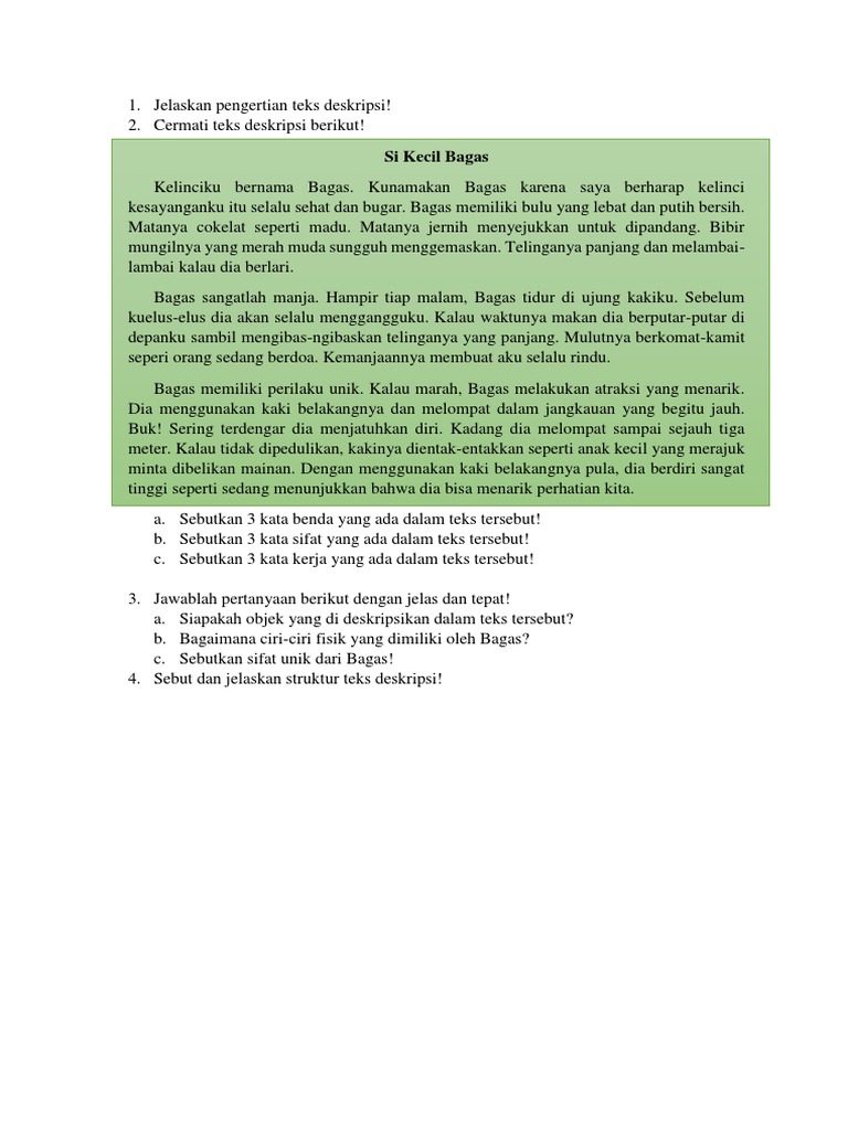 Struktur kaidah / unsur kebahasaan dari teks deskripsi | Referensi Siswa