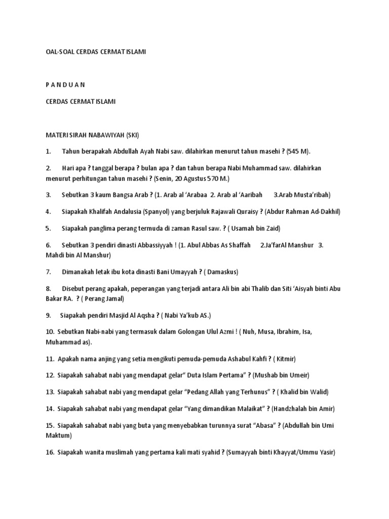 DOC) Soal Cerdas Cermat Islam | rangga anugrah - Academia.edu