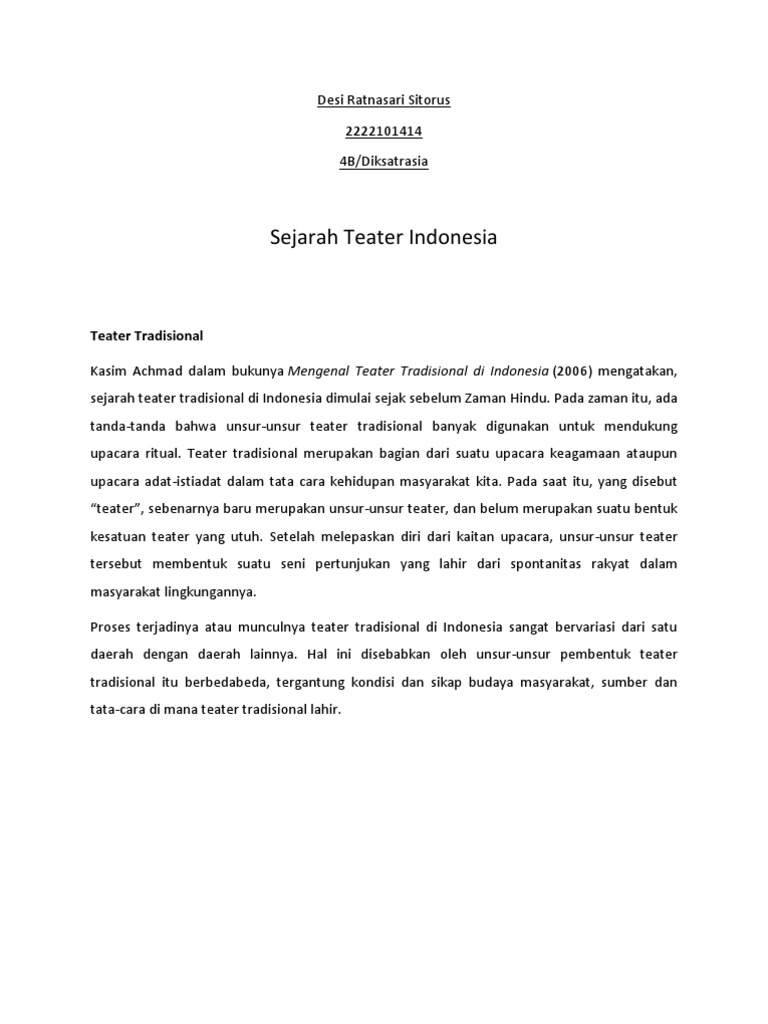 Sejak Kapan Sejarah Teater Tradisional Di Indonesia Dimulai