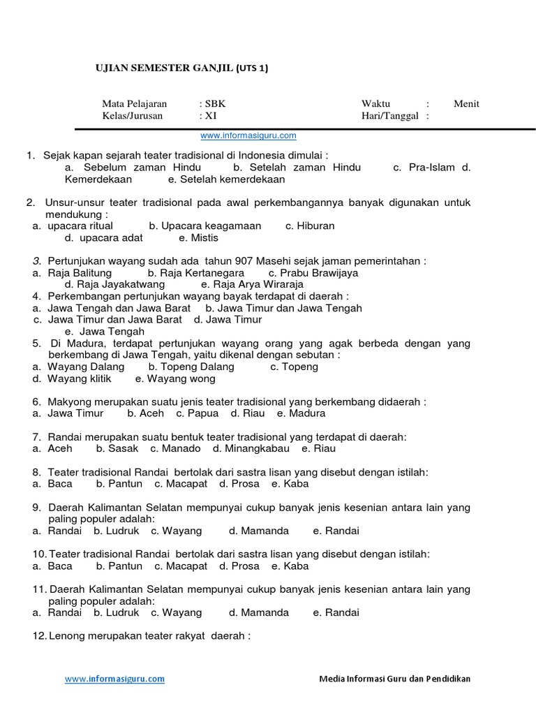 Kumpulan Soal UTS SMA Sederajat Kelas XI Terbaru 2016/2017 uts 1 sbk xi
