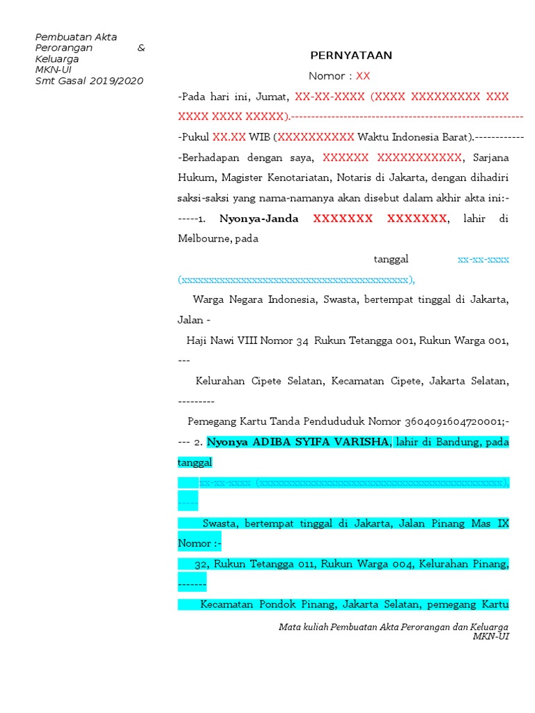 Contoh Surat Keterangan Kerja Di Notaris