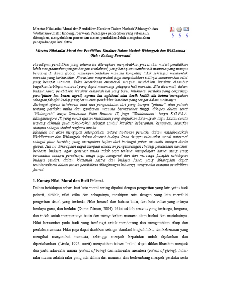 Meretas Nilai-Nilai Moral Dan Pendidikan Karakter Dalam Naskah …