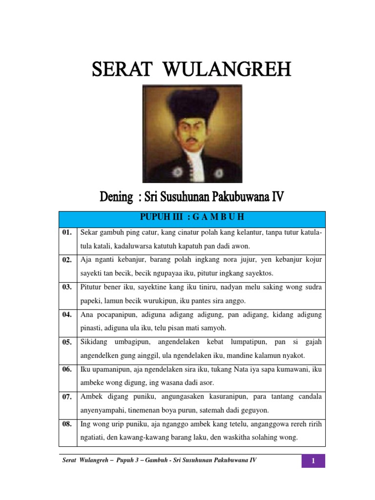 Serat Wulangreh Pupuh Gambuh Dan Artinya Dalam Bahasa Jawa