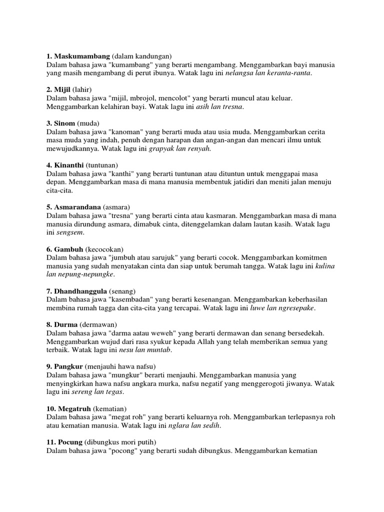 DOC) Macam-macam Tembang Macapat | Nafisatul Layli Q - Academia.edu