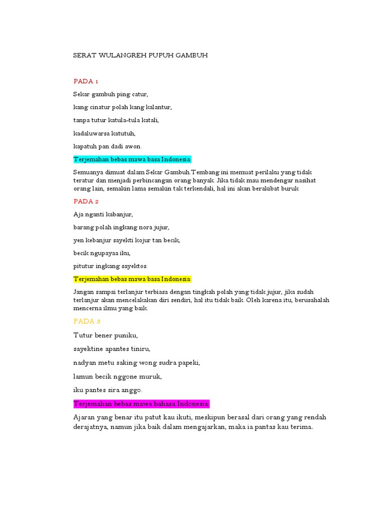 Serat Wedhatama Pupuh Gambuh Beserta Artinya Lengkap - Jooinfoo …