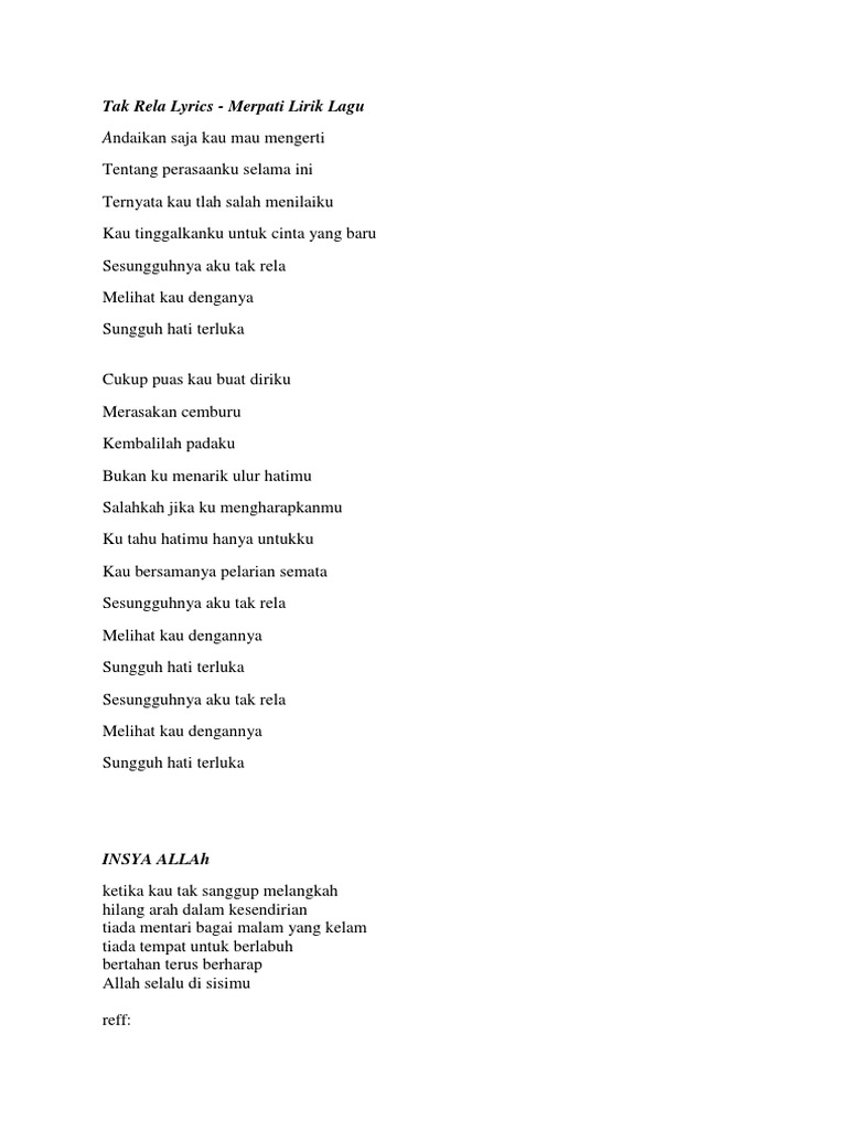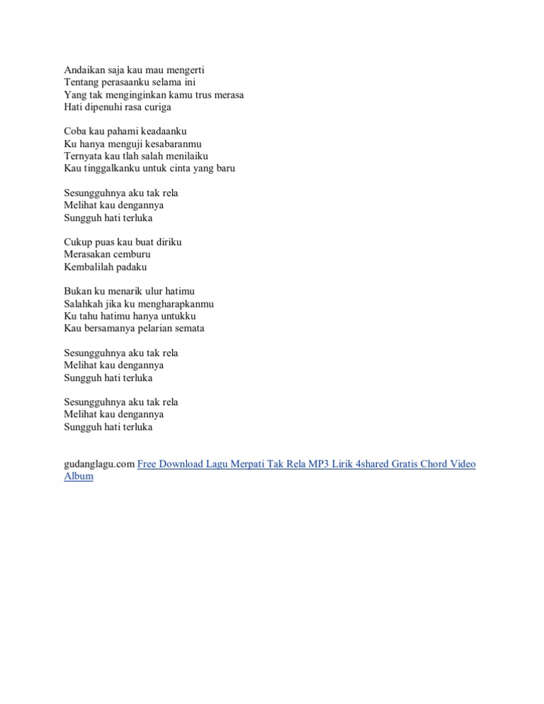 LYRICS - Merpati - Tak Rela - Wattpad