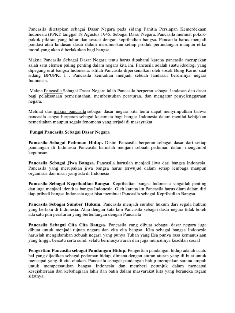 Pancasila Sebagai Dasar Negara : Pengertian, Arti dan Fungsi