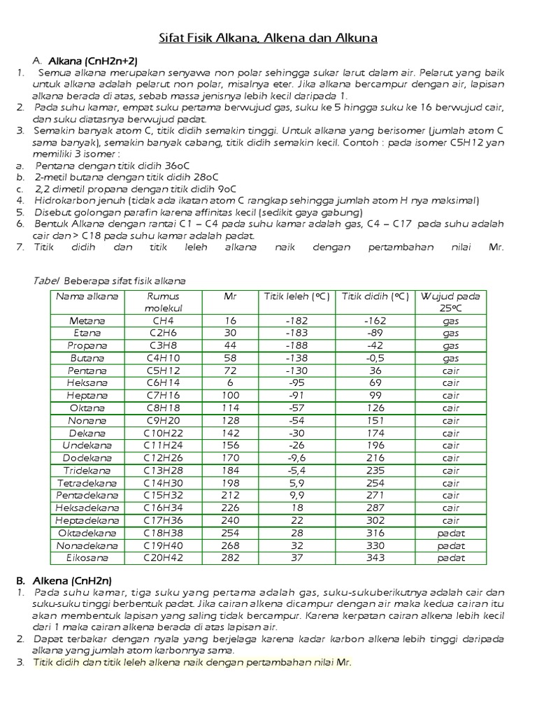 Sifat Fisik Alkana Alkena Alkuna