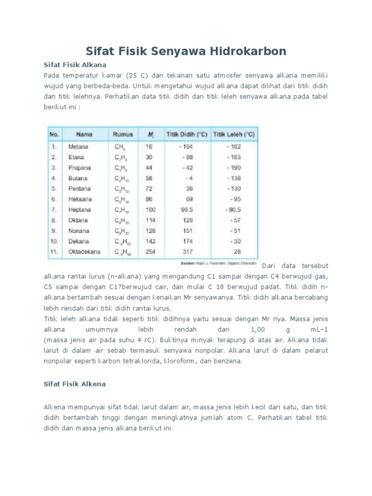 Sifat Fisik Hidrokarbon (Alkana, Alkena, dan Alkuna) - Kimia XI …