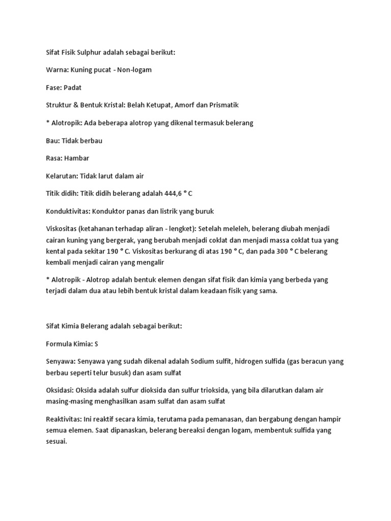 Manfaat Belerang atau Sulfur Beserta Sifatnya | Siswapedia