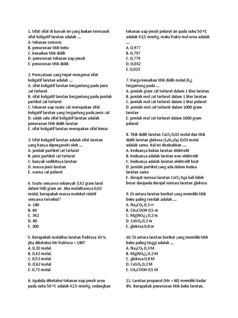 Pilihan Ganda Soal Dan Jawaban Sifat Koligatif