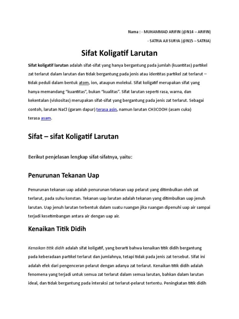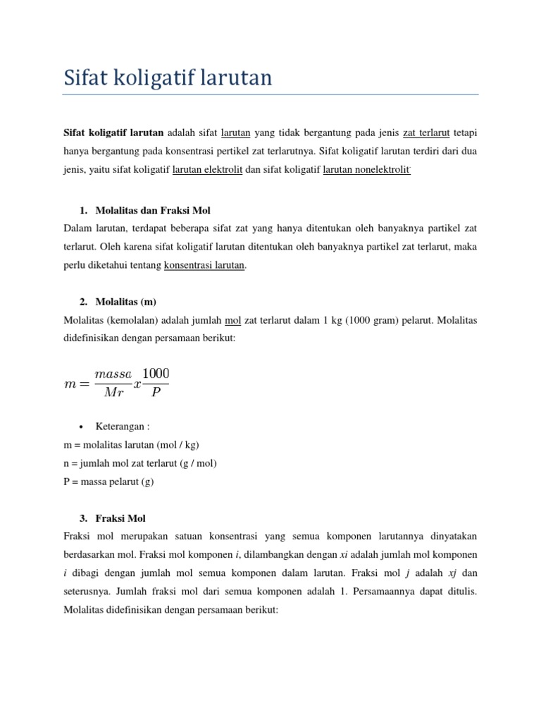 Sifat Koligatif Larutan UNSERA - [PDF Document]
