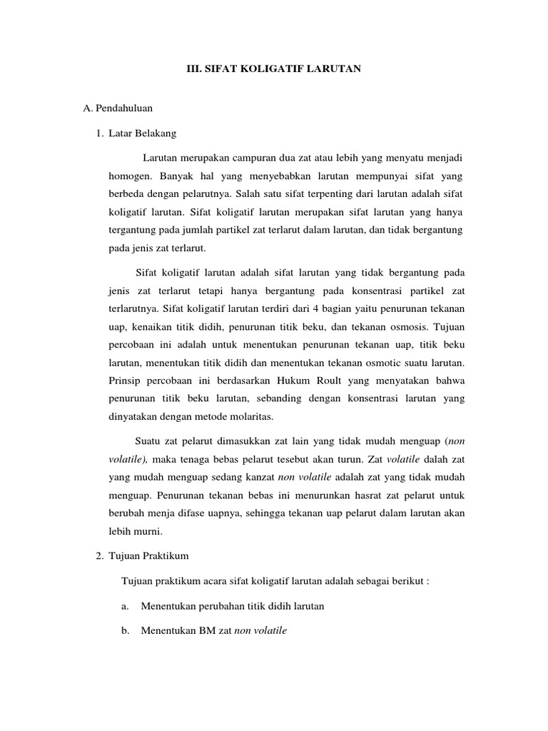 Iii. Sifat Koligatif Larutan: volatile), maka tenaga bebas pelarut …