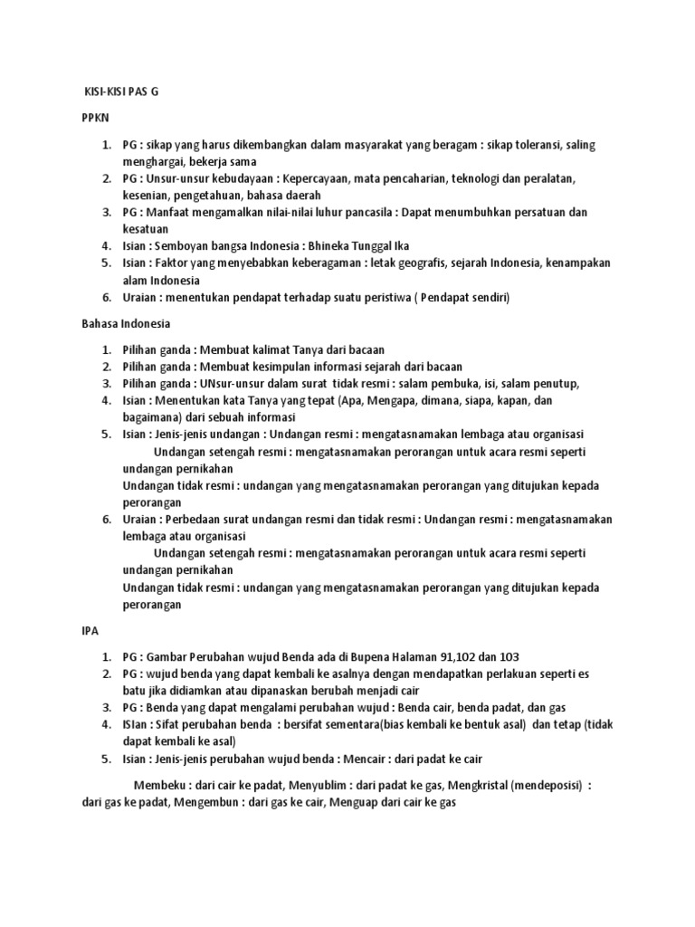 Kumpulan Kisi-kisi Soal UTS/PTS Tema 2 Kelas 6 SD, Buku Tematik …
