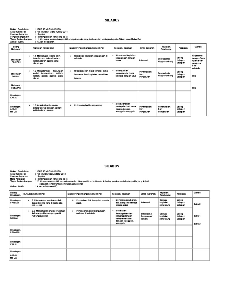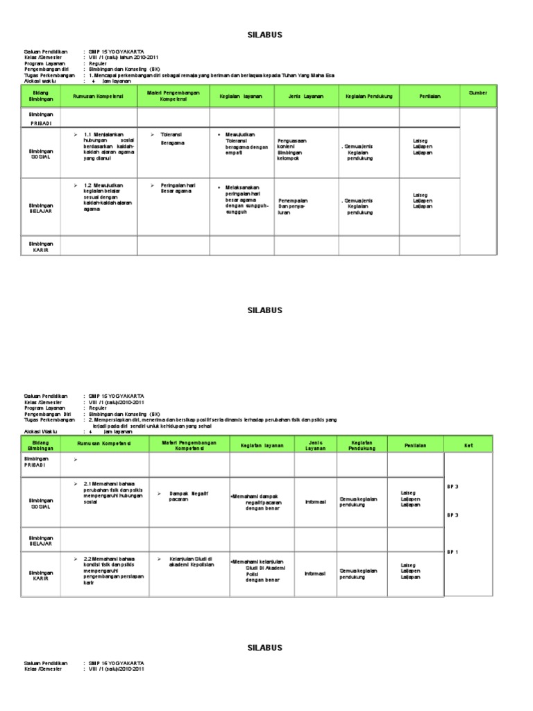 Contoh Silabus Bk Smp – IlmuSosial.id