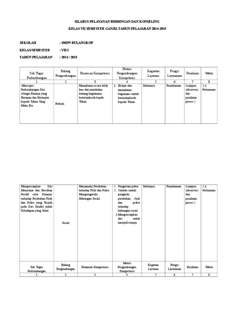 Silabus Bimbingan Konseling SMP Kurikulum 2013 | Administrasi Guru …