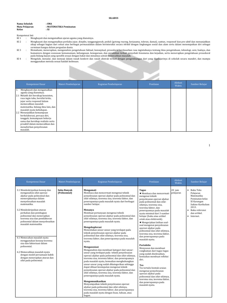 DOC) Silabus matematika sma kelas xi peminatan | Dewi Oktaviani - Academia.edu