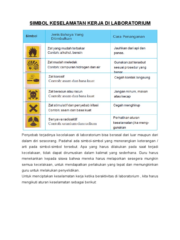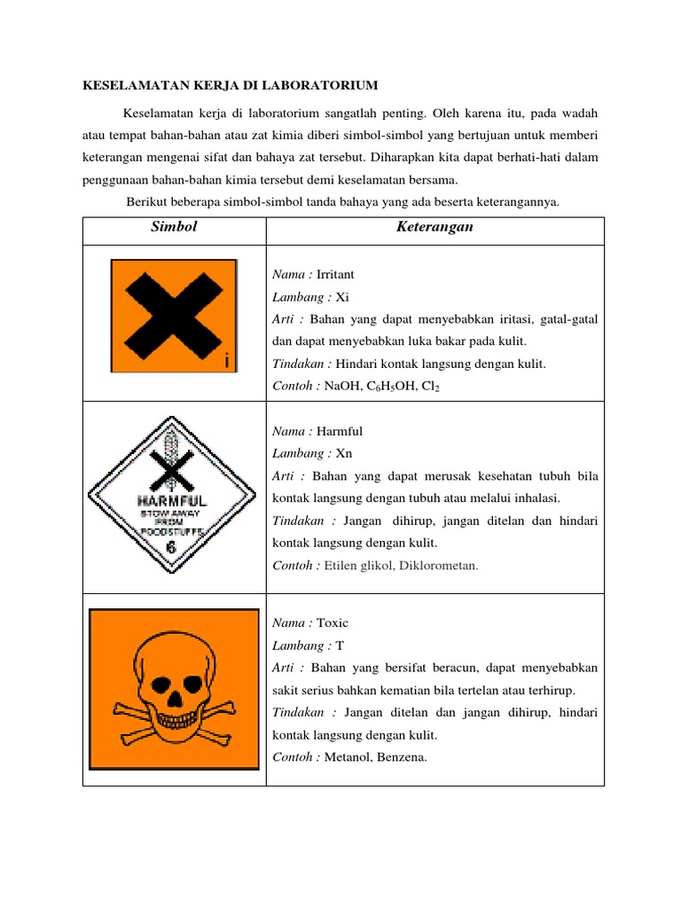 Simbol Keselamatan Kerja di Laboratorium dan Artinya - Jurusan …