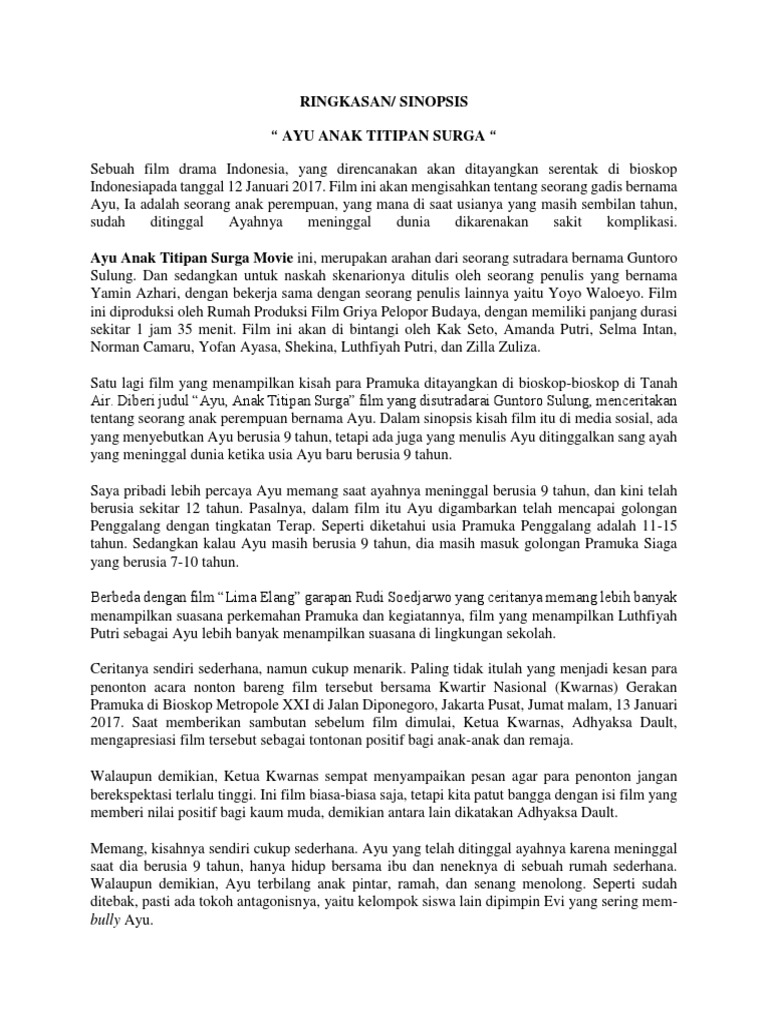 buatlah sinopsis dari cerita ayu anak titipan surga - Brainly.co.id