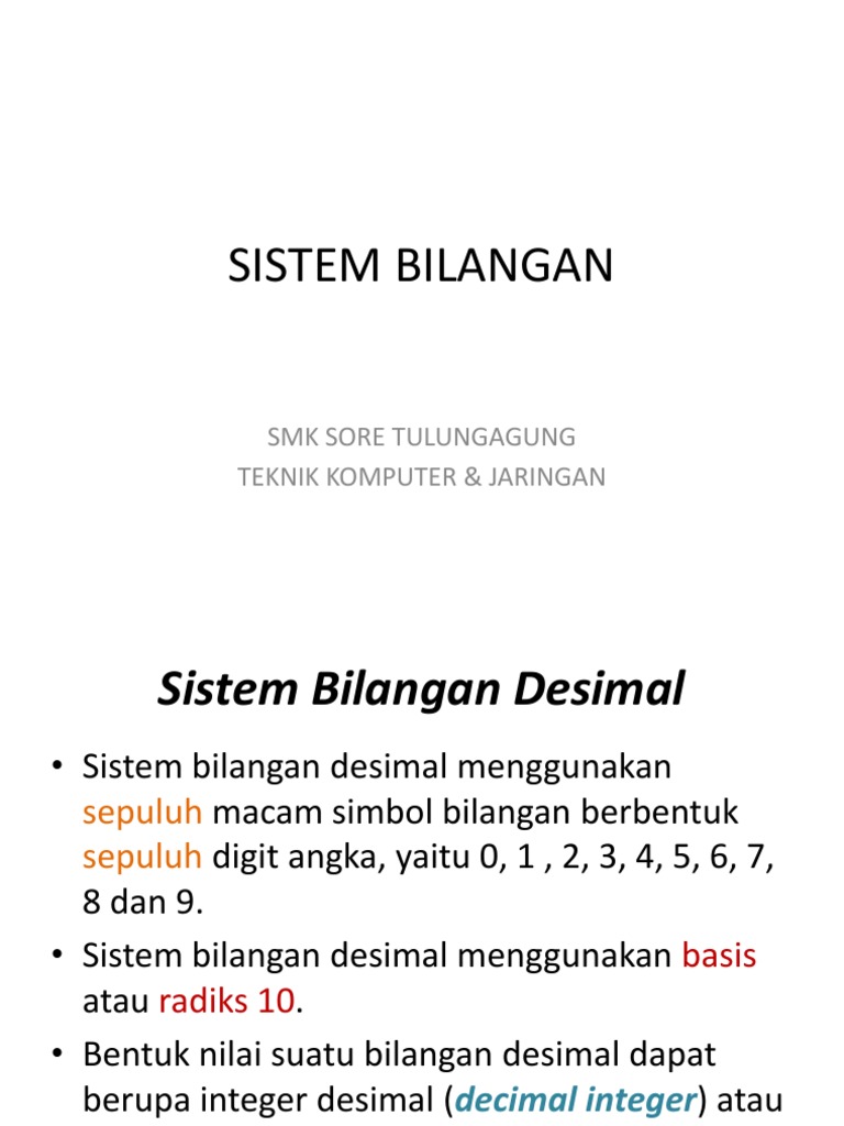 Pengantar Informatika : Sistem Bilangan, Biner, Desimal, Oktal …