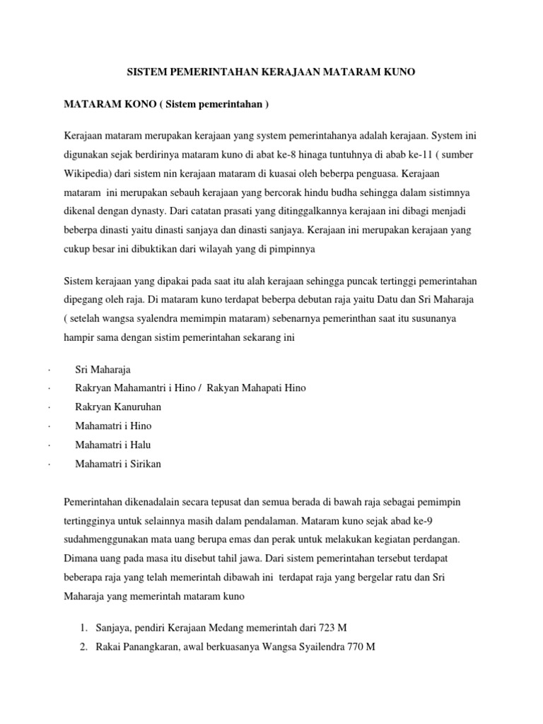 Sejarah Lengkap Tentang Kerajaan Mataram Kuno ? Web viewRaja …