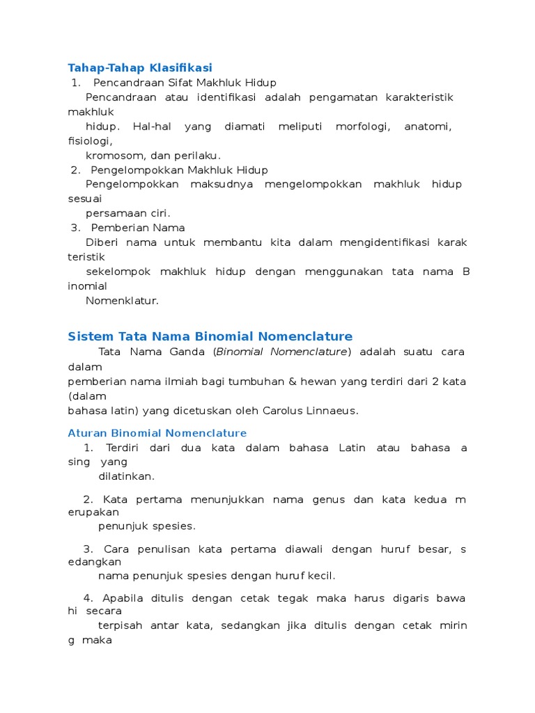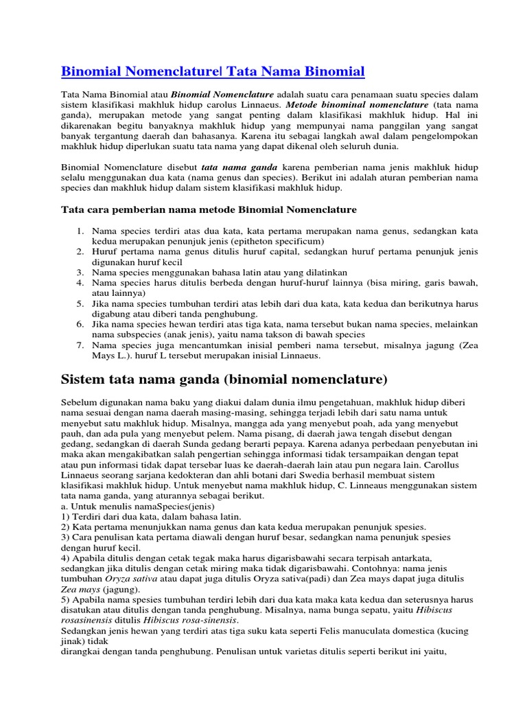 Sistem Tata Nama Ilmiah Mahluk Hidup (Binomial Nomenclature) | D …