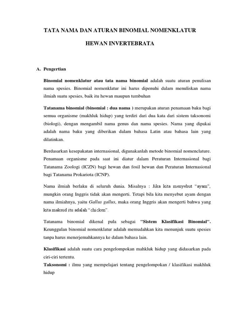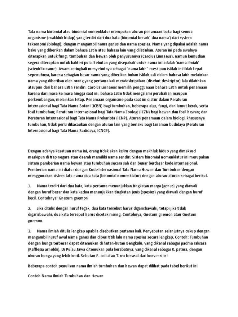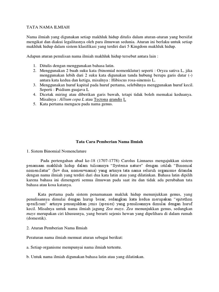 Tata Cara Penulisan Nama Ilmiah Makhluk Hidup Sistem Binomial …