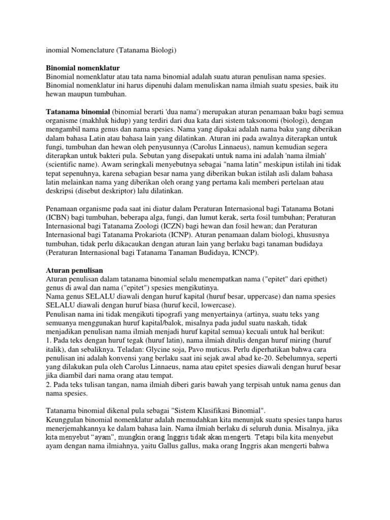 Tata Nama Dan Aturan Binomial Nomenklatur