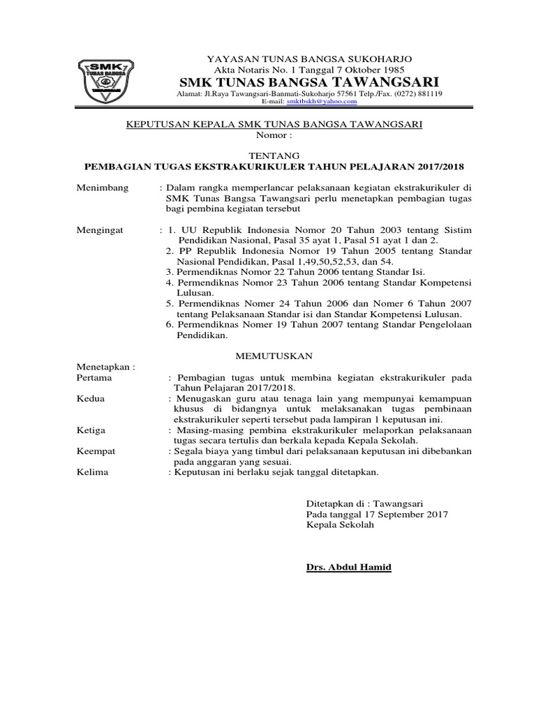 Contoh Surat Contoh Sk Pembagian Tugas Pembina Ekstrakurikuler Sma …