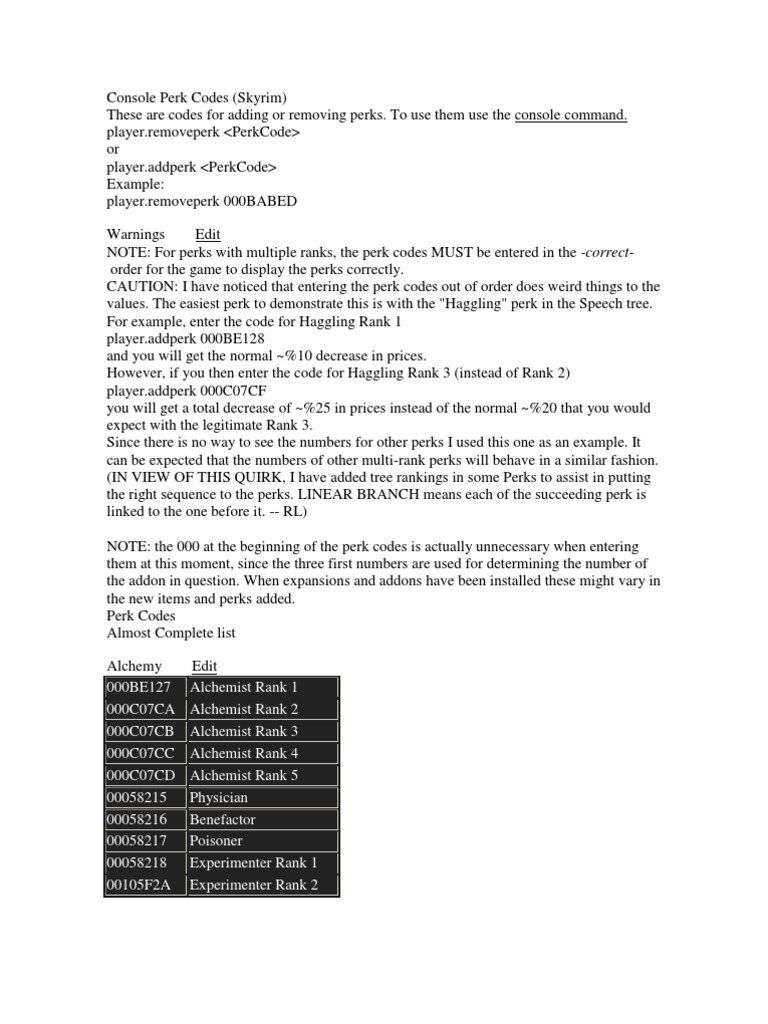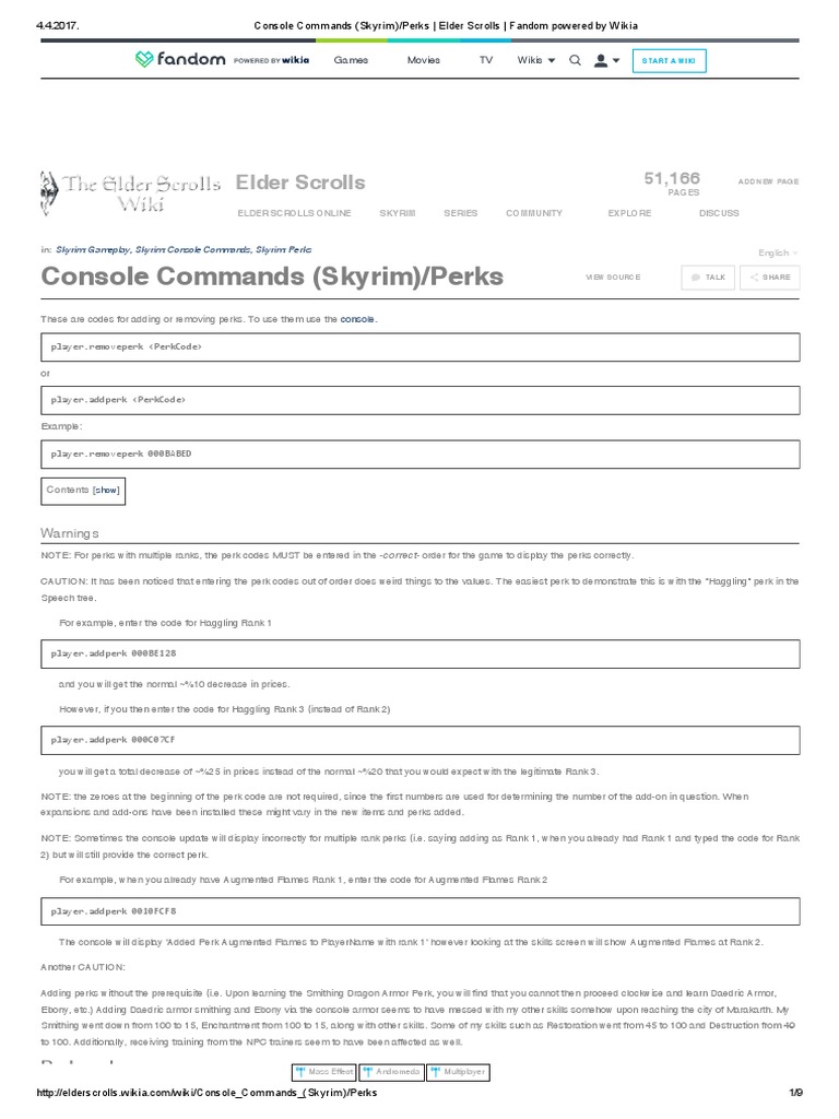 Console Commands (Skyrim)_Perks _ Elder Scrolls _ Fandom Powered …