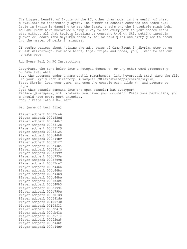 perk skyrim.txt | Command Line Interface | Areas Of Computer Science