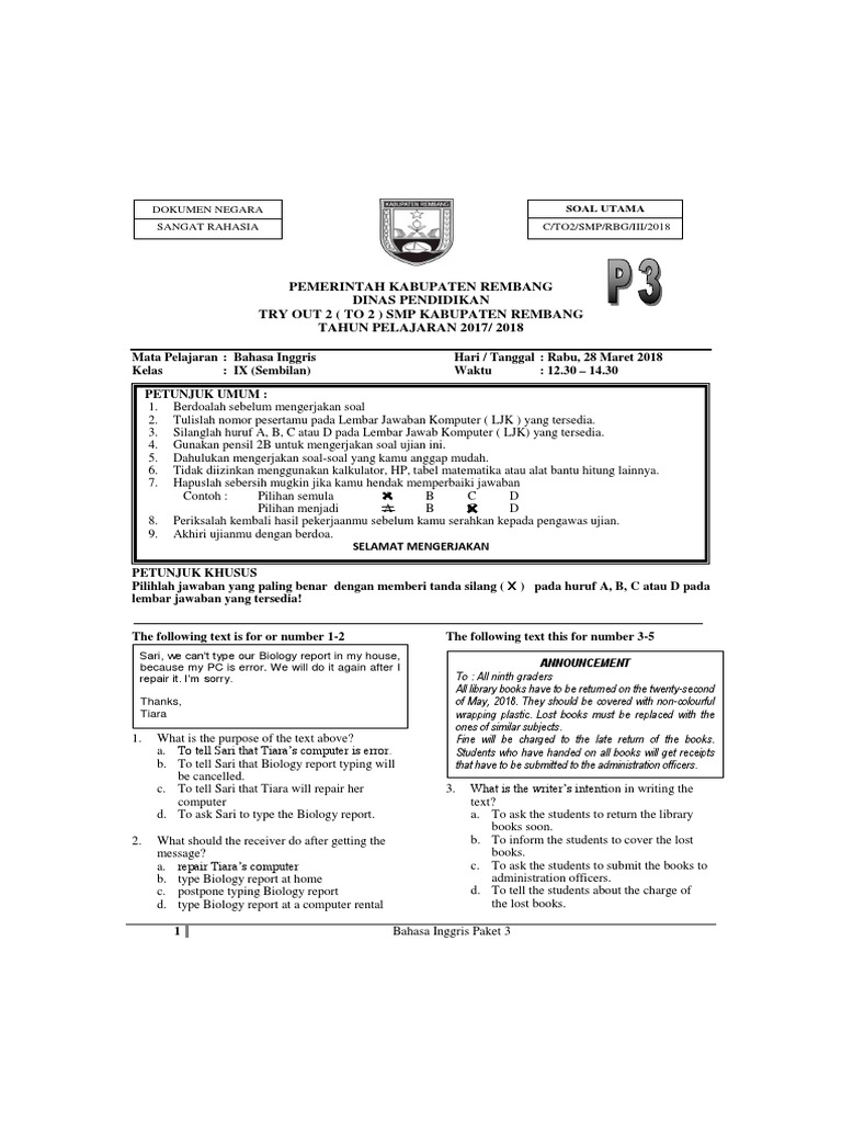 Contoh Soal Bahasa Inggris Kelas 9 Announcement - Dapatkan Contoh