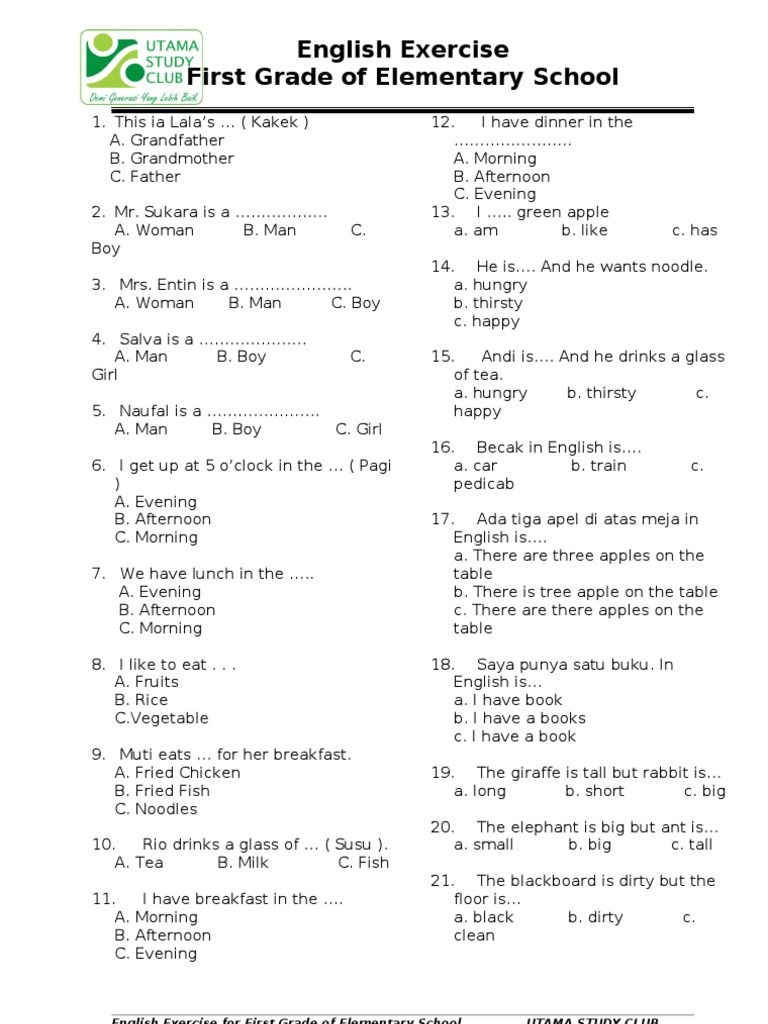DOC) Soal bahasa inggris kelas 2 sd | Damayanti Aqueen - Academia.edu