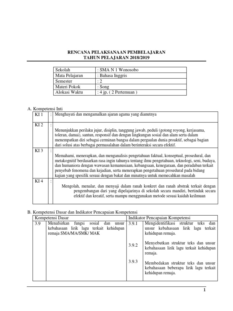 GURU BERBAGI | RPP SONGS/LAGU SEDERHANA KELAS X SMA/MA
