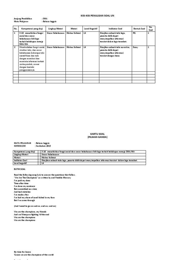 Contoh Soal Lirik Lagu Bahasa Inggris Sma - Dapatkan Contoh