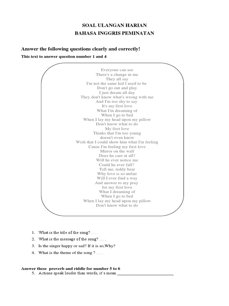 Contoh Soal Bahasa Inggris Tentang Song - Contoh Soal Terbaru