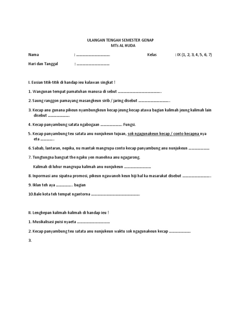 Contoh Soal Uts Bahasa Sunda Kelas 8 Semester 1 - key
